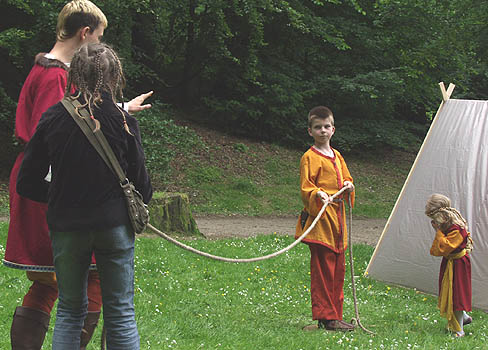 Ein weitere Spiel war das Seilziehen der Wikinger, bei dem zwei Kontrahenten versuchen müssen, möglichst lange auf dem Brett stehen zu bleiben - egal wie!