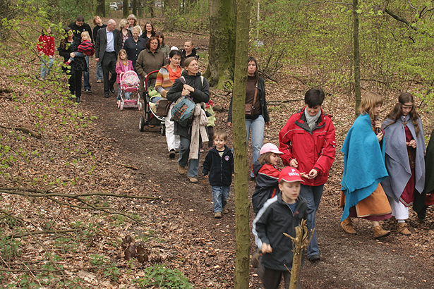 Nach der Einleitung setzte sich die Menschenschlange in Bewegung, um zu einem kleinen "Märchenhain" am Rande des Scharpenacken zu gelangen.