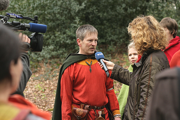 Als wir dann nach 200 Metern am Märchenhain ankamen, mussten wir eine für frühmittelalterliche Menschen sicherlich außergewöhnliche Prüfung bestehen: Das WDR-Fernsehen war zugegen, um unsere Aktion "einzufangen".