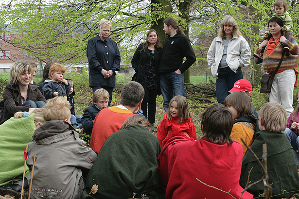 Es war schon total süß, wie die kleinen Zuhörer das Laub mitkneteten wie Brotteig und mit Stöcken den Hammer des Schmiedes nachahmten. So wurde aus dem Märchen eine "interaktive Geschichte".
