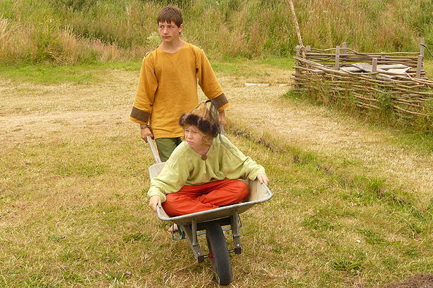Und Arbeitsgeräte eignen sich zumeist auch für allerlei Schabernack. Aber Achtung: Nicht von Bengt erwischen lassen, das ist die unauthentische Schubkarre! :-)