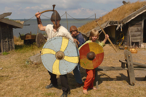 So standen die Wikinger bei einer beliebten Angriffstechnik: Vorn die Krieger mit überlappten Schilden und erhobenen Äxten, dahinter gedeckt ein Krieger mit hervorschnellender Lanze.