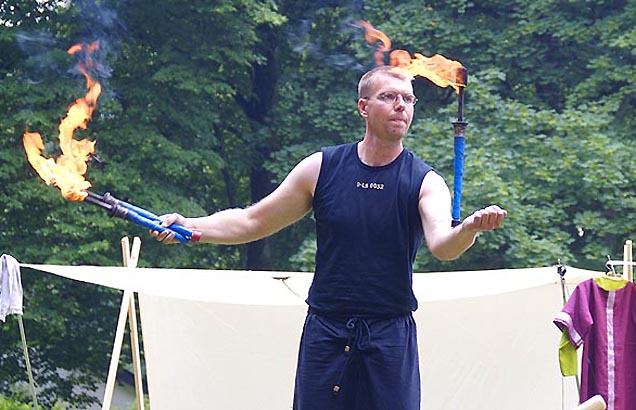 Thor den Feuerwächter alias Torsten, der uns wieder einige spektakuläre Kunststücke mit brennenden Fackeln zeigte.